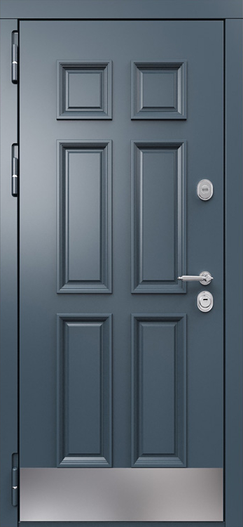 Дверь стальная МДФ эмаль №563 — это удачное сочетание надежной металлической основы и аккуратной декоративной отделки. Каркас из профильной трубы и стальной лист толщиной 2 мм обеспечивают прочность и устойчивость к взлому, а ребра жесткости повышают общий ресурс эксплуатации. Важной особенностью модели является наличие терморазрыва в коробке и полотне: конструкция эффективно препятствует промерзанию зимой, исключает появление конденсата и сохраняет тепло в помещении. Панели МДФ с ПВХ-покрытием, использованные с обеих сторон, защищены от влаги и мелких механических повреждений, благодаря чему дверь долго сохраняет привлекательный внешний вид. Два контура резинового уплотнителя дополнительно усиливают защиту от сквозняков и уличного шума. Такая дверь органично подходит для частных домов, квартир и офисов, сочетая в себе надежность стали и практичность современной отделки. Дверь стальная МДФ эмаль №563 от производителя: быстрое изготовление и монтаж в Жуковском, индивидуальные размеры, широкий выбор материалов и фурнитуры, официальная гарантия до 10 лет.