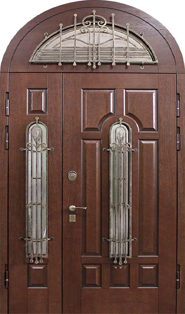 Арочные конструкции всегда придают входу выразительность и особый статус, а если добавить две створки и стеклянные вставки, дверь превращается в центральный элемент фасада. Натуральное дерево в отделке подчеркивает солидность и гармонично сочетается с металлом, из которого выполнено основание: каркас и полотно из профильных труб и стальной лист толщиной 2 мм обеспечивают прочность и долговечность. Для удобства и безопасности используются два замка разного типа — сувальдный и цилиндровый, оба с тремя ригелями, что делает взлом крайне затруднительным. Двухстворчатая арочная дверь со стеклом в частный дом №14 может изготавливаться любого размера и адаптироваться под архитектуру конкретного здания. Возможна установка дополнительных элементов: зеркало, стеклопакет, кованые детали или даже видеодомофон. Резиновое уплотнение по двум контурам защищает от сквозняков, а возможность выбора отделки и фурнитуры открывает простор для индивидуального дизайна. Двухстворчатая арочная дверь со стеклом в частный дом №14 от производителя: быстрое изготовление и монтаж в Жуковском, индивидуальные размеры, широкий выбор материалов и фурнитуры, официальная гарантия до 10 лет.
