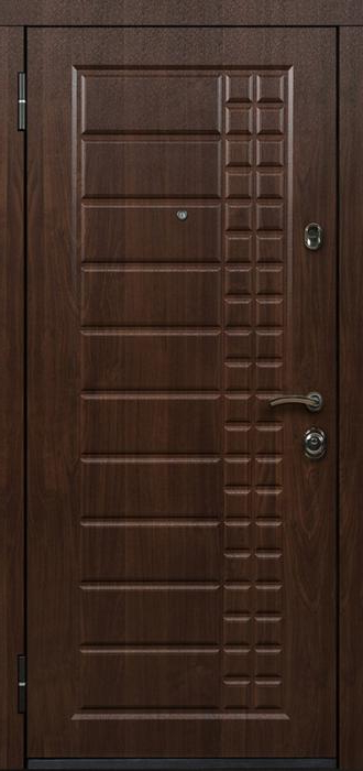 Входная дверь в деревянный дом №23 создана так, чтобы гармонично вписываться в архитектуру коттеджа или загородного жилища, но при этом не терять своей универсальности — она одинаково хорошо подойдёт и для квартиры, и для офиса. Конструкция основывается на прочном металлическом каркасе из профильной трубы с листом стали толщиной 2 мм и рёбрами жёсткости, которые обеспечивают долговечность и устойчивость к нагрузкам. С обеих сторон дверь облицована плитами МДФ, материалом, который выгодно сочетает декоративность и практичность: он устойчив к мелким повреждениям, не выгорает и долго сохраняет аккуратный внешний вид. Два контура уплотнителей создают надёжную защиту от пыли и сквозняков, а блокираторы усиливают уровень безопасности. Терморазрыв в конструкции не предусмотрен, но при необходимости можно дополнительно усилить тепло- и шумоизоляцию. Эта модель объединяет сдержанный дизайн и крепкую основу, что делает её хорошим выбором для частного дома с естественной атмосферой уюта. Входная дверь в деревянный дом №23 от производителя: быстрое изготовление и монтаж в Жуковском, индивидуальные размеры, широкий выбор материалов и фурнитуры, официальная гарантия до 10 лет.