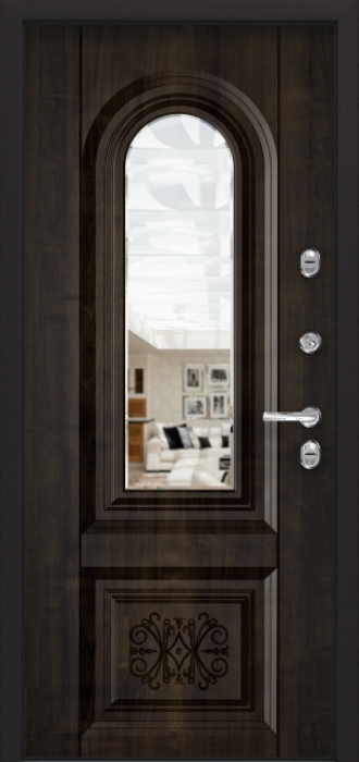 Дверь тёплая входная в частный дом №49 создана для тех, кто ценит надёжность и практичность без лишних компромиссов. Конструкция из профильных труб и стали толщиной 2 мм обеспечивает прочность и устойчивость к взлому, а двойной контур уплотнителя защищает от сквозняков и влаги. Особенность модели — встроенное зеркало, которое не только добавляет удобства, но и визуально расширяет пространство прихожей. Снаружи и внутри дверь отделана МДФ-накладками, материалом, который хорошо переносит повседневные нагрузки, не боится царапин и сохраняет привлекательный вид долгие годы. Замковая система сочетает сувальдный и цилиндровый механизмы от российских производителей, что делает вход максимально безопасным. Модель подходит для установки как в частный дом, так и в квартиру или офис, а возможность комбинировать отделку и дополнять конструкцию стеклопакетами или ковкой открывает простор для индивидуального дизайна. Дверь теплая входная в частный дом №49 от производителя: быстрое изготовление и монтаж в Жуковском, индивидуальные размеры, широкий выбор материалов и фурнитуры, официальная гарантия до 10 лет.
