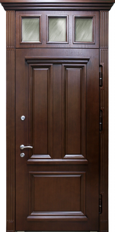 Дверь с сувальдным замком и фрамугой №34 идеально сочетает в себе стиль и надежность. Панель из натурального дерева, использованная как для внешней, так и для внутренней отделки, придает двери благородный и элегантный вид, делая её отличным выбором для помещений с классическим или современным интерьером. Каркас двери выполнен из профильной трубы 50х25 мм и усилен ребрами жесткости, что гарантирует прочность конструкции. Замки от производителей "Просам" и "Мосрентген" с тремя ригелями обеспечивают высокий уровень безопасности. Дверь оснащена уплотнителями с двумя контурами, что гарантирует отличную герметичность, а возможность замены замков и добавления кованых элементов делает её адаптируемой под любые требования. Кроме того, дверь можно дополнить зеркалом, стеклопакетом или видеодомофоном для еще большего комфорта. Входная дверь с сувальдным замком и фрамугой №34 от производителя: быстрое изготовление и монтаж в Жуковском, индивидуальные размеры, широкий выбор материалов и фурнитуры, официальная гарантия до 10 лет.