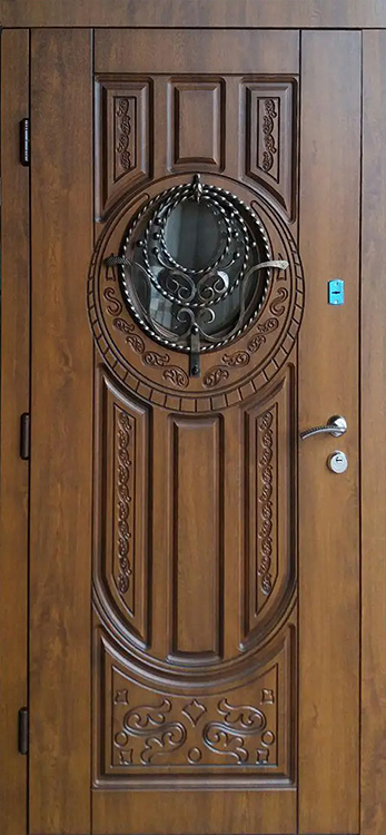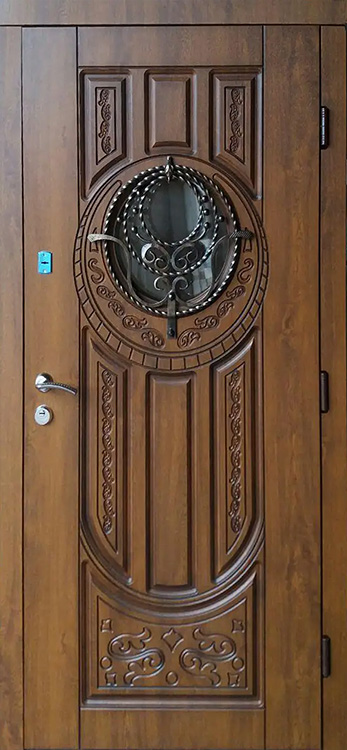 Владельцы коттеджей ценят входные конструкции, которые одинаково подчеркивают статус и защищают от любых внешних факторов. Здесь удачно сочетаются прочный металл и массив дуба, придающий поверхности солидность и благородство. Натуральное дерево сохраняет цвет и текстуру долгие годы, устойчиво к механическим повреждениям и перепадам температуры. Внутри конструкции скрыт стальной каркас толщиной 1,5 мм с ребрами жесткости и противосъёмными блокираторами, что делает полотно практически неприступным. Особое преимущество — терморазрыв коробки и полотна, благодаря которому дверь не промерзает даже в сильные морозы и сохраняет тепло в доме. Именно на этом контрасте надежности и эстетики выделяется железная дверь со стеклом и ковкой №21, украшенная изящными декоративными элементами. Три контура магнитного уплотнения обеспечивают герметичность, а система замков Kale Kilit повышает уровень безопасности, при этом конструкция допускает установку современных умных решений и дополнительных декоративных опций. Железная дверь со стеклом и ковкой №21 от производителя: быстрое изготовление и монтаж в Жуковском, индивидуальные размеры, широкий выбор материалов и фурнитуры, официальная гарантия до 10 лет.