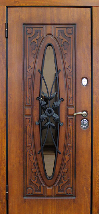 В частном доме дверь должна быть не просто барьером, а настоящей визитной карточкой, и именно эту задачу решает входная дверь со стеклом и ковкой №23. Натуральное дерево в отделке придает ей благородный и теплый вид, а декоративная ковка превращает конструкцию в выразительный элемент архитектуры. Внутри скрыт стальной каркас с листом металла 1,5 мм и противосъёмными блокираторами, что обеспечивает прочность и устойчивость к взлому. Особого внимания заслуживает наличие терморазрыва как в коробке, так и в полотне: он защищает от промерзания, исключает появление конденсата и помогает сохранять тепло зимой и прохладу летом. Тройной контур магнитного уплотнения усиливает герметичность и снижает уровень уличного шума, а пенопласт повышенной плотности в качестве наполнителя добавляет теплоизоляции. Входная дверь в частный дом со стеклом и ковкой №23 гармонично сочетает надежность и эстетику, позволяя владельцу адаптировать её под стиль фасада с помощью дополнительных декоративных решений. Входная дверь в частный дом со стеклом и ковкой №23 от производителя: быстрое изготовление и монтаж в Жуковском, индивидуальные размеры, широкий выбор материалов и фурнитуры, официальная гарантия до 10 лет.