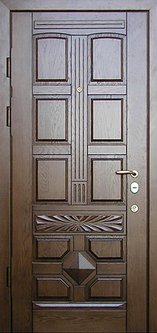 Входная металлическая дверь с порошковым покрытием стеклом и ковкой в частный дом №27