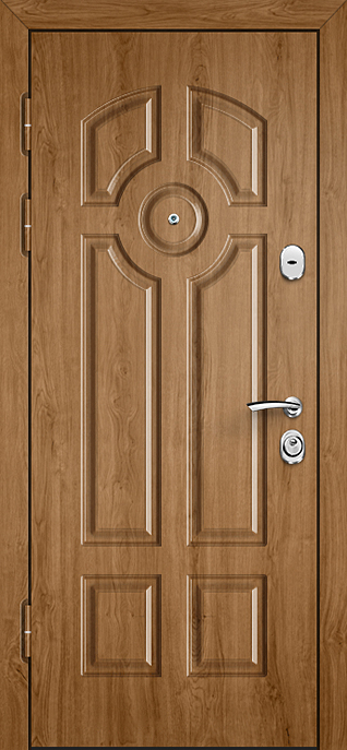 Филёнчатая отделка всегда придаёт дверному полотну особый шарм, создавая эффект глубины и аккуратного рельефа. Входная дверь МДФ с внешней панелью под филёнку №537 универсальна и одинаково хорошо смотрится на фасаде частного дома, в офисе или в квартире. Отделка из МДФ-плиты устойчива к мелким повреждениям, не выгорает и сохраняет аккуратный вид при ежедневной эксплуатации, а при необходимости легко комбинируется с другими декоративными элементами. В основе конструкции — каркас из профильной трубы, лист стали толщиной 2 мм и рёбра жёсткости, обеспечивающие надёжность и жёсткость всей системы. Для удобства и безопасности предусмотрены два замка: сувальдный Просам и цилиндровый Мосрентген. Два контура уплотнения повышают комфорт эксплуатации, а при желании дверь можно дополнить зеркалом, стеклопакетом или коваными вставками, сделав её не только прочной, но и выразительной частью интерьера. Входная дверь МДФ и внешней панелью под филенку №537 от производителя: быстрое изготовление и монтаж в Жуковском, индивидуальные размеры, широкий выбор материалов и фурнитуры, официальная гарантия до 10 лет.