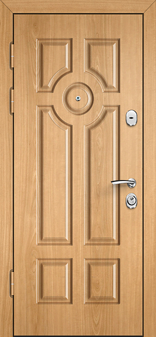 Входная дверь наружная с терморазрывом №24 — это надежное решение для частного дома или коттеджа, сочетающее в себе прочность и высокую тепло- и шумоизоляцию. Внешняя и внутренняя отделка выполнены из МДФ с ПВХ, что придает двери современный и долговечный вид, устойчивый к механическим повреждениям и внешним воздействиям. Терморазрыв в коробке и полотне значительно снижает теплопотери, что особенно важно для сохранения тепла в зимнее время. Тройной контур магнитного уплотнения и пенопласт повышенной плотности обеспечивают отличную шумоизоляцию, создавая комфорт в вашем доме. Усиленная конструкция с ребрами жесткости и противосъёмными блокираторами добавляет безопасности, а замки турецкого производства Kale Kilit обеспечивают надежную защиту. Возможность выбора отделки, а также установка зеркала, стеклопакета или кованых элементов делают эту дверь не только практичной, но и стильной. Дверь наружная с терморазрывом №24 от производителя: быстрое изготовление и монтаж в Жуковском, индивидуальные размеры, широкий выбор материалов и фурнитуры, официальная гарантия до 10 лет.