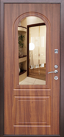 Зеркальная входная дверь в квартире №48 — практичное решение для тех, кто ценит удобство и аккуратный внешний вид. Зеркало внутри избавляет от необходимости в отдельной трюмо или шкафчике с отражающей поверхностью, что особенно удобно в небольших коридорах. Конструкция выполнена на основе прочного стального каркаса с листом металла толщиной 2 мм и усилена рёбрами жёсткости, благодаря чему дверь надёжно защищает от попыток взлома. Накладки МДФ служат не только декоративной отделкой, но и обеспечивают устойчивость к механическим повреждениям и долговечность при ежедневной эксплуатации. Два контура уплотнителя помогают сохранить тишину и тепло в помещении, а возможность выбора размеров и вариантов отделки делает модель универсальной для квартир, частных домов и офисных пространств. Зеркальная входная дверь в квартире №48 от производителя: быстрое изготовление и монтаж в Жуковском, индивидуальные размеры, широкий выбор материалов и фурнитуры, официальная гарантия до 10 лет.