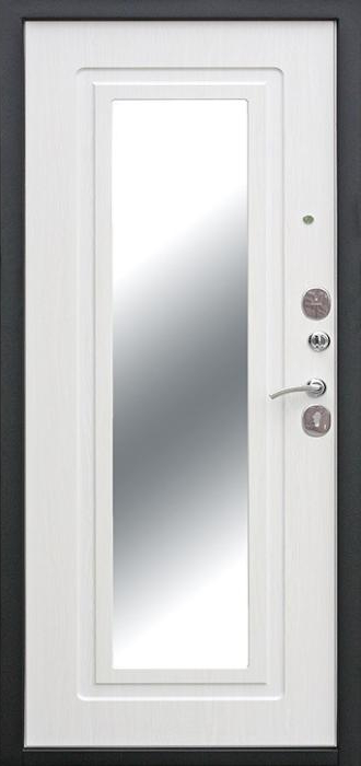 Надёжность металлической двери всегда в приоритете, но когда она получает дополнительное оснащение, результат становится особенно удобным. Входная дверь с зеркалом №78 удачно объединяет прочность конструкции и практичность деталей: массивный каркас из профильной трубы, лист стали толщиной 2 мм и усиленные рёбра жёсткости формируют крепкий защитный барьер, а зеркало на внутренней стороне делает её частью интерьера, экономя место и добавляя визуального простора. Снаружи используется молотковое напыление, устойчивое к царапинам и погодным перепадам, благодаря чему дверь подходит как для квартиры, так и для частного дома. Внутренняя отделка выполнена плитой МДФ, которая выглядит стильно и сохраняет аккуратность даже при активной эксплуатации. Два контура уплотнения помогают защитить помещение от сквозняков, а при необходимости конструкцию можно дополнить шумоизоляцией, современными замками и даже видеодомофоном. Входная дверь с зеркалом №78 от производителя: быстрое изготовление и монтаж в Жуковском, индивидуальные размеры, широкий выбор материалов и фурнитуры, официальная гарантия до 10 лет.