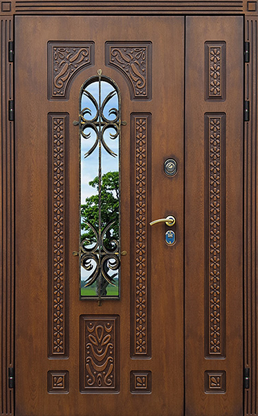 Двойная входная дверь с большим стеклом и ковкой для дома №25 сочетает в себе стиль и надежность, предлагая великолепное решение для вашего дома. Внешняя и внутренняя отделка выполнены из панелей МДФ с ПВХ, что придает двери долговечность и устойчивость к механическим повреждениям, а также способствует легкости ухода. Стеклопакет в комбинации с изысканным кованым узором создаёт не только эстетическое наслаждение, но и позволяет улучшить светопроникновение в помещении. Двойная входная дверь с большим стеклом и ковкой для дома №25 от производителя: быстрое изготовление и монтаж в Жуковском, индивидуальные размеры, широкий выбор материалов и фурнитуры, официальная гарантия до 10 лет.