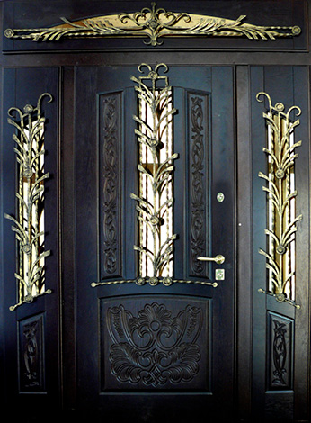 Входная дверь с ковкой и стеклом №12