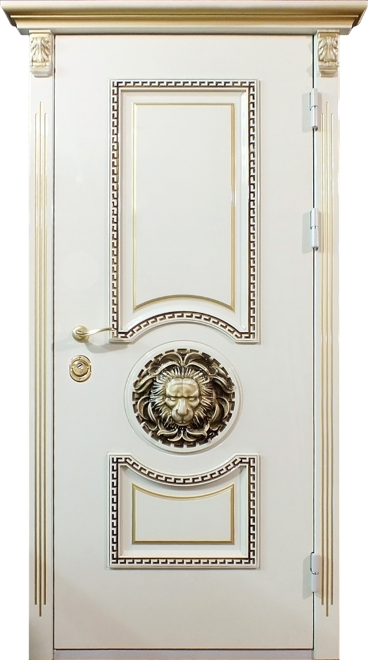 Входная дверь со стеклопакетом и патиной для загородного дома белая №29