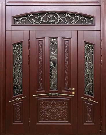 Эта модель создана для тех, кто ценит солидность и внушительный внешний вид парадного входа. Натуральный массив дуба в отделке придаёт дверному полотну статусный характер, а стеклянные вставки позволяют добавить света и лёгкости фасаду дома. При этом основа конструкции выполнена из прочной профильной трубы с использованием листа металла толщиной 2 мм и ребер жёсткости, что гарантирует надёжность и устойчивость к взлому. Двустворчатая входная дверь со стеклом №39 удобна для широких проёмов коттеджей и частных домов, обеспечивая не только безопасность, но и удобство при внесении крупногабаритной мебели. Итальянские замки Cisa сочетают в себе высокий класс защиты и плавность хода механизма, а наличие двух контуров уплотнения дополнительно защищает от сквозняков. Возможность комбинировать отделку, добавить зеркало, витраж или кованые элементы делает модель гибкой для индивидуального дизайна и подчеркивает её представительский статус. Двустворчатая входная дверь со стеклом №39 от производителя: быстрое изготовление и монтаж в Жуковском, индивидуальные размеры, широкий выбор материалов и фурнитуры, официальная гарантия до 10 лет.