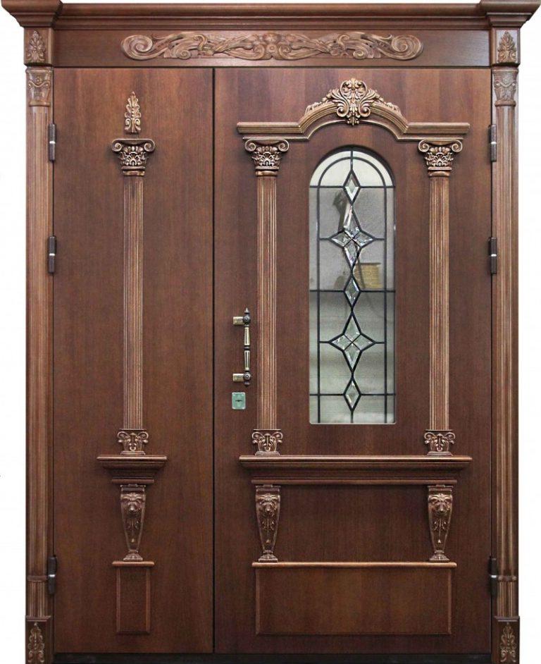 Эффектная дверь входная с окном №337 создана для парадных решений в коттеджах и частных домах, где важен не только уровень безопасности, но и выразительность архитектурного облика. Прочный каркас из стальной профильной трубы с листом металла толщиной 2 мм и системой ребер жесткости обеспечивает надежность конструкции, а отделка массивом дерева придает ей теплый и представительный вид. Натуральное дерево отличается стойкостью к царапинам и ударам, долго сохраняет форму и цвет, что делает дверь практичной для эксплуатации на улице. Встроенное окно добавляет естественного света и визуально облегчает массивное полотно, создавая гармонию между защитой и эстетикой. Двойной контур уплотнителей препятствует проникновению холода и влаги, блокираторы усиливают безопасность. Такая высокая дверь становится не только защитой, но и ярким акцентом фасада, подчеркивающим статус хозяев дома. Дверь в частный дом входная с окном №23 от производителя: быстрое изготовление и монтаж в Жуковском, индивидуальные размеры, широкий выбор материалов и фурнитуры, официальная гарантия до 10 лет.