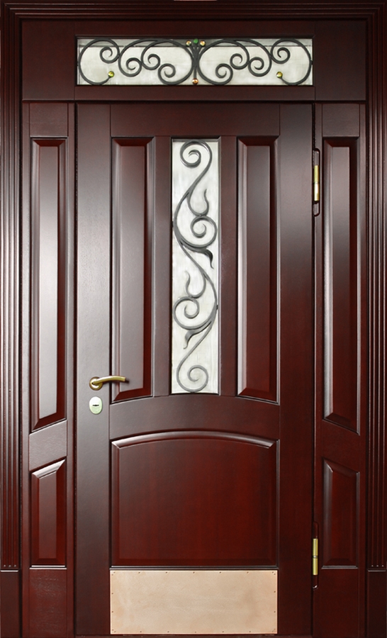 Красивая шпонированная дверь с надежной фурнитурой и ковкой "лоза" №33 идеально дополнит интерьер вашего частного дома или коттеджа. Внешняя и внутренняя отделка выполнены из натурального дерева, что придает двери элегантность и стиль. Профильная труба 50х25 мм используется для каркаса и полотна, а лист металла толщиной 2 мм и ребра жесткости из профильных труб 40х25 мм обеспечивают прочность и долговечность. Несмотря на отсутствие терморазрыва, дверь гарантирует надежную защиту и теплоизоляцию благодаря двум контурам уплотнения. Элементы ковки "лоза" придают двери особое очарование, сочетая практичность с эстетикой. Эта дверь — идеальный выбор для тех, кто ценит стиль, качество и безопасность. Красивая шпонированная дверь с надежной фурнитурой и ковкой "лоза" №33 от производителя: быстрое изготовление и монтаж в Жуковском, индивидуальные размеры, широкий выбор материалов и фурнитуры, официальная гарантия до 10 лет.