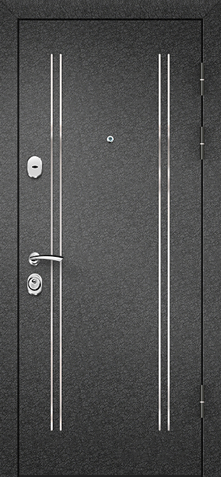 Дизайнерская современная дверь для дома №7 станет ярким акцентом вашего интерьера. Она идеально подходит для установки в частных домах, квартирах или офисах, придавая помещению стиль и современный шарм. Внешняя отделка с молоточковым напылением придает двери устойчивость к механическим повреждениям и атмосферным воздействиям, сохраняя её внешний вид на долгое время. Внутреннее покрытие из МДФ добавляет прочности и долговечности. Дополняет дизайн зеркало, которое не только украшает дверь, но и визуально расширяет пространство. Конструкция с металлическим каркасом и листом металла толщиной 2 мм обеспечивает высокую надежность, а профильные трубы усиливают жесткость полотна. Два контура уплотнителей защищают от холода и сквозняков, обеспечивая дополнительный комфорт. Дизайнерская современная дверь для дома №7 от производителя: быстрое изготовление и монтаж в Жуковском, индивидуальные размеры, широкий выбор материалов и фурнитуры, официальная гарантия до 10 лет.