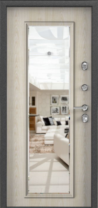 Сочетание прочной конструкции и декоративных решений делает эту модель особенно практичной для частного дома или квартиры. Каркас и полотно выполнены из профильной трубы с листом стали толщиной 2 мм, усиленные рёбрами жёсткости и блокираторами, что обеспечивает высокую надёжность. Два контура резинового уплотнителя препятствуют проникновению влаги и сквозняков, а порошковое напыление на внешней поверхности защищает металл от коррозии и сохраняет аккуратный вид даже при воздействии осадков и солнечного света. Внутренняя отделка панелями МДФ ПВХ создаёт уютный интерьерный акцент и устойчива к повседневным нагрузкам. Дверь входная металлическая уличная в дом №12 дополнена зеркалом, которое делает её не только функциональной, но и более удобной в быту. Для безопасности предусмотрены два замка российского производства — сувальдный Просам и цилиндровый Мосрентген, каждый с тремя ригелями. Дополнительно дверь можно оснастить стеклопакетом или коваными элементами, превратив её в индивидуальное решение для конкретных задач. Дверь входная металлическая уличная в дом №12 от производителя: быстрое изготовление и монтаж в Жуковском, индивидуальные размеры, широкий выбор материалов и фурнитуры, официальная гарантия до 10 лет.